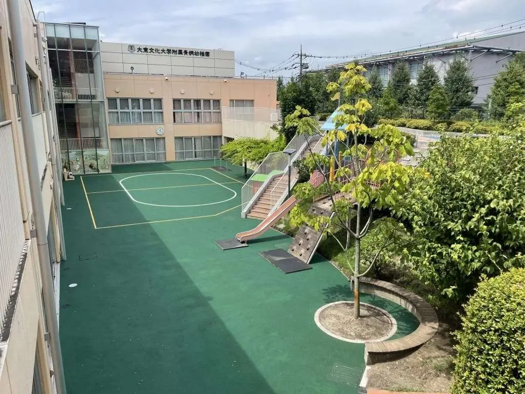 園庭の改修が行われ、砂地からゴムチップへと変わりました!